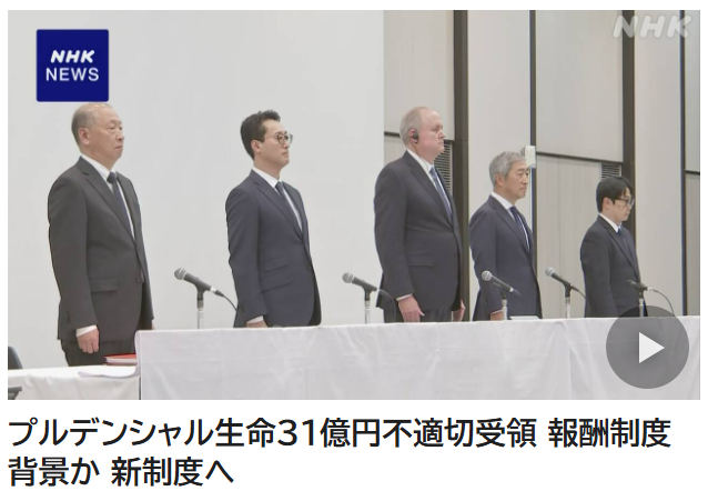 NHK News「プルデンシャル生命31億円不適切受領 報酬制度背景か 新制度へ」2026年1月24日